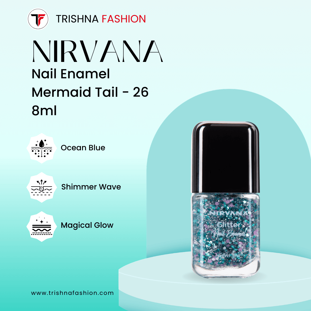 Nirvana Color Nail Enamel – Mermaid Tail-26 is a stunning new glitter shade that adds sparkling elegance to your manicure. Designed with fine glitter particles and a shimmery texture, it delivers a radiant, eye-catching finish.